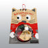 Boule cadeau pour chats contenant deux surprises : une petite souris en tissu écossais avec queue en fourrure et un nœud papillon doré muni d’un élastique adaptable à tous les cous.