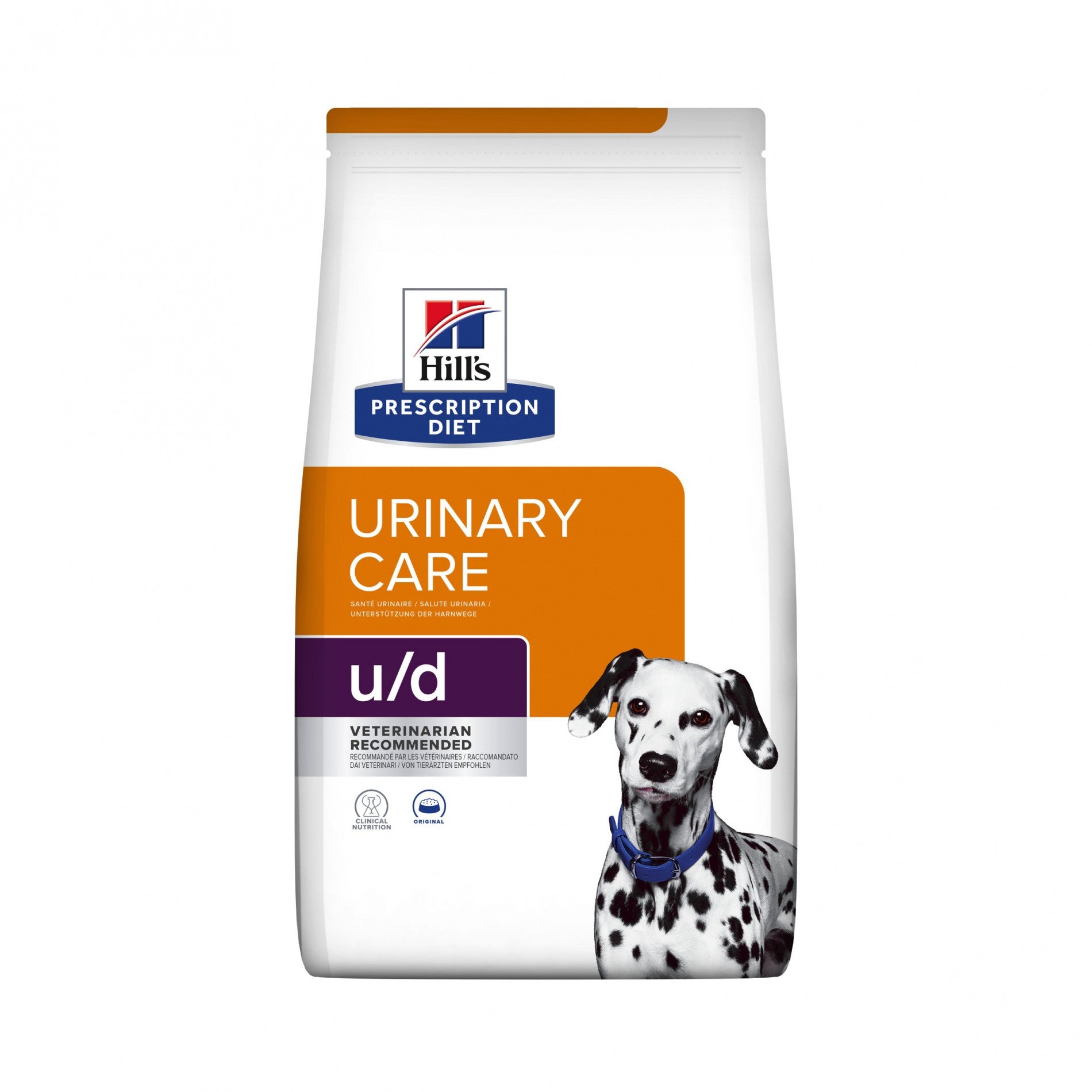 Aliment à teneur réduite en protéines et acides nucléiques pour chiens souffrant d'urolithiases à urate, de calculs d'oxalate et de cystine. PRESCRIPTION DIET CANINE u/d permet un pH urinaire alcalin.