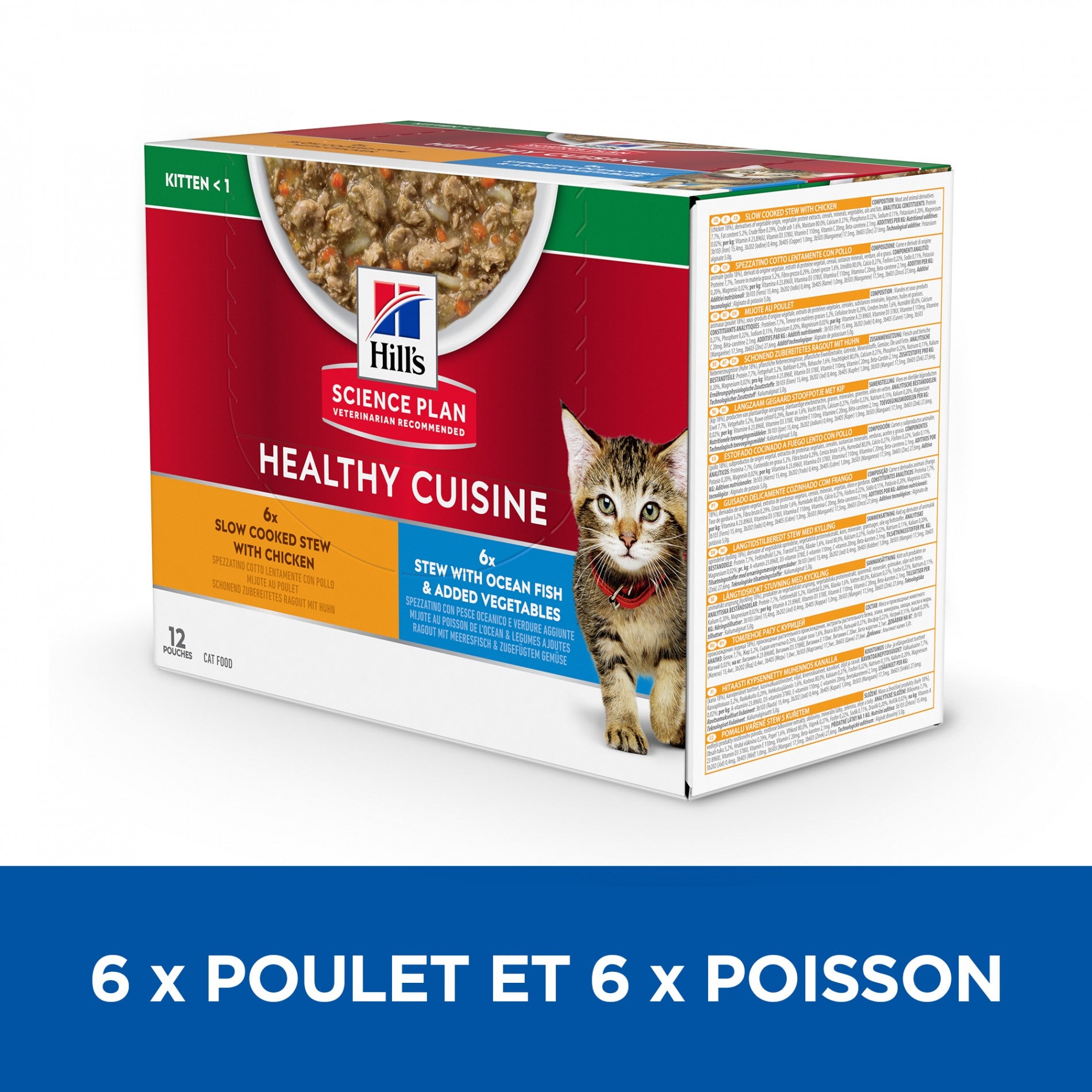 Pour varier les plaisirs, l’aliment Hill's Science Plan Healthy Cuisine Mijotés Kitten peut être servi :