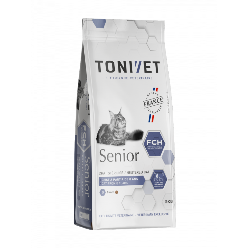 Croquettes TONIVET CHAT Senior Stérilisé : l'aliment idéal pour le chat senior À mesure que votre chat entre dans la phase senior de sa vie, il devient essentiel de lui offrir une alimentation adaptée pour préserver sa vitalité et son bien-être. Les croquettes TONIVET CHAT Senior Stérilisé ont été spécialement formulées pour répondre aux besoins nutritionnels spécifiques des chats âgés et stérilisés. Fabriquées en France, ces croquettes sont un gage de qualité et de fiabilité pour prendre soin de votre compagnon à quatre pattes.